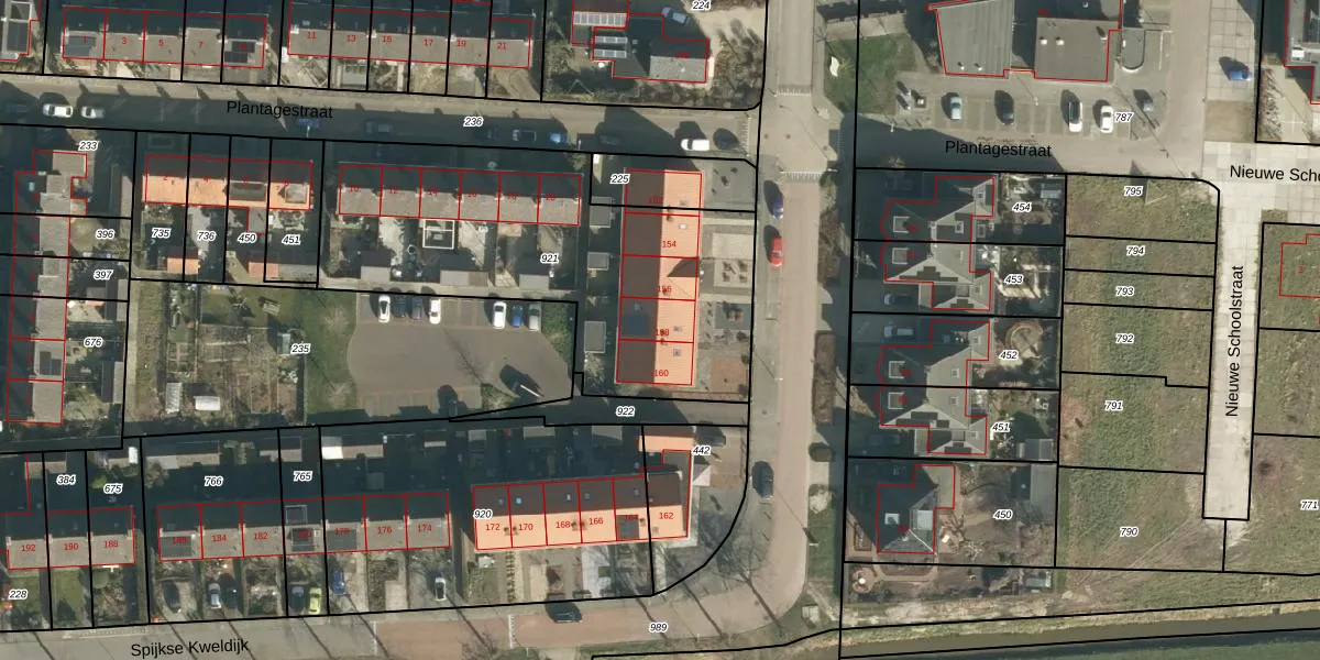Het perceel waarop Spijkse Kweldijk 158 staat heeft een oppervlakte van 1665 m². Dit is een zeer groot perceel. De perceeloppervlakte wordt geregistreerd door het Kadaster. Gedetailleerde informatie over de maten van dit perceel kunt u vinden in het rapport Kadastrale kaart met maatvoering van Spijkse Kweldijk 158.