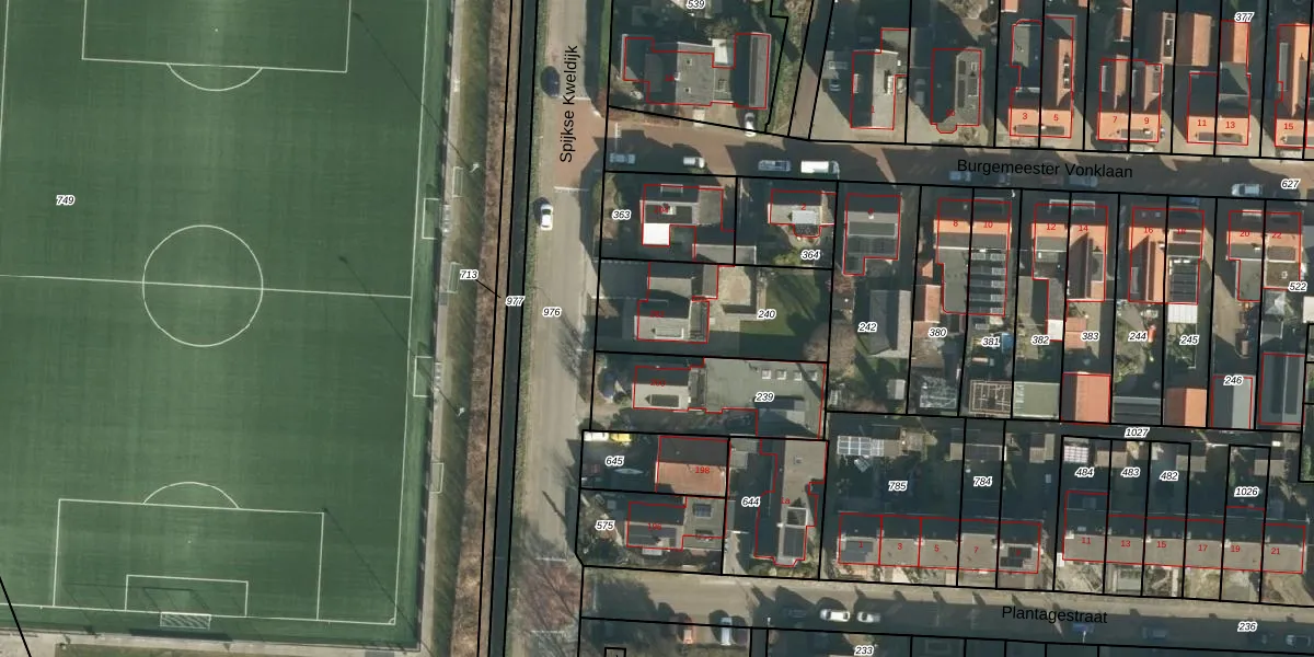 Gebruik de zoekbalk of klik op een perceel voor informatie over de adressen binnen dit perceel.