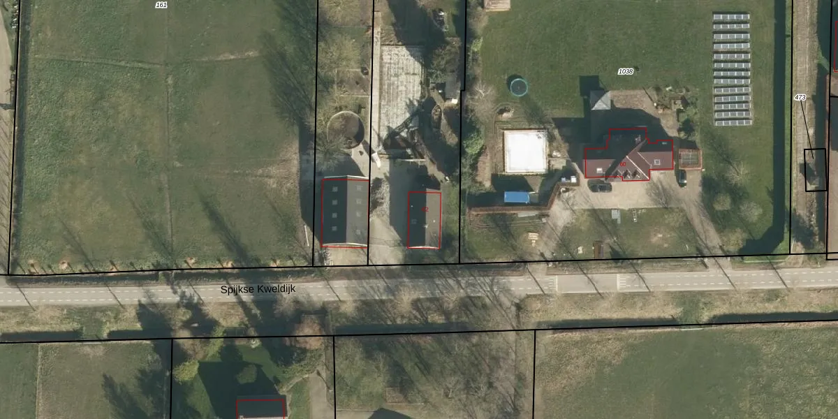 Het perceel waarop Spijkse Kweldijk 62 staat heeft een oppervlakte van 2385 m². Dit is een zeer groot perceel. De perceeloppervlakte wordt geregistreerd door het Kadaster. Gedetailleerde informatie over de maten van dit perceel kunt u vinden in het rapport Kadastrale kaart met maatvoering van Spijkse Kweldijk 62.