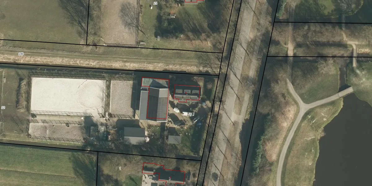 Het adres ligt op het perceel VRN00-O-22, dat zich in de kadastrale gemeente Vuren bevindt. De oppervlakte van het perceel is 1,0 ha. Dat is groter dan gemiddeld in Vuren, waar de gemiddelde perceeloppervlakte op 8255,97 m² ligt. Het kleinste perceel in de kadastrale gemeente is 0 m² groot. De grootste perceeloppervlakte is 31,9 ha. Er zijn geen andere adressen aanwezig op het perceel. De laatste wijziging in het de Basisregistratie Kadaster (BRK) was op 08-11-2001.