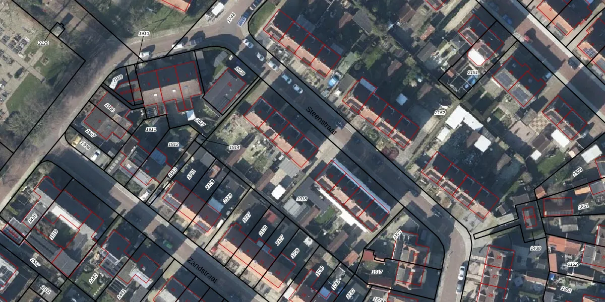 Het perceel waarop Steenstraat 8 staat heeft een oppervlakte van 1855 m². Dit is een zeer groot perceel. De perceeloppervlakte wordt geregistreerd door het Kadaster. Gedetailleerde informatie over de maten van dit perceel kunt u vinden in het rapport Kadastrale kaart met maatvoering van Steenstraat 8.