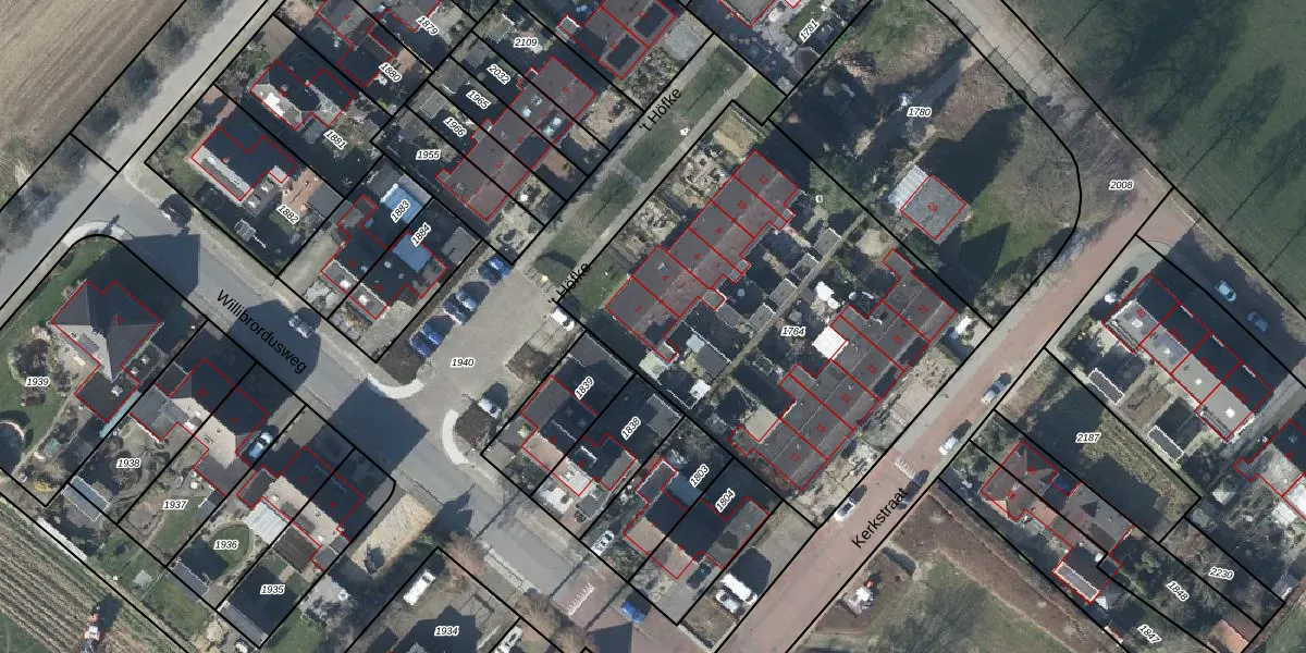 Het perceel waarop 't Höfke 2 staat heeft een oppervlakte van 2191 m². Dit is een zeer groot perceel. De perceeloppervlakte wordt geregistreerd door het Kadaster. Gedetailleerde informatie over de maten van dit perceel kunt u vinden in het rapport Kadastrale kaart met maatvoering van 't Höfke 2.
