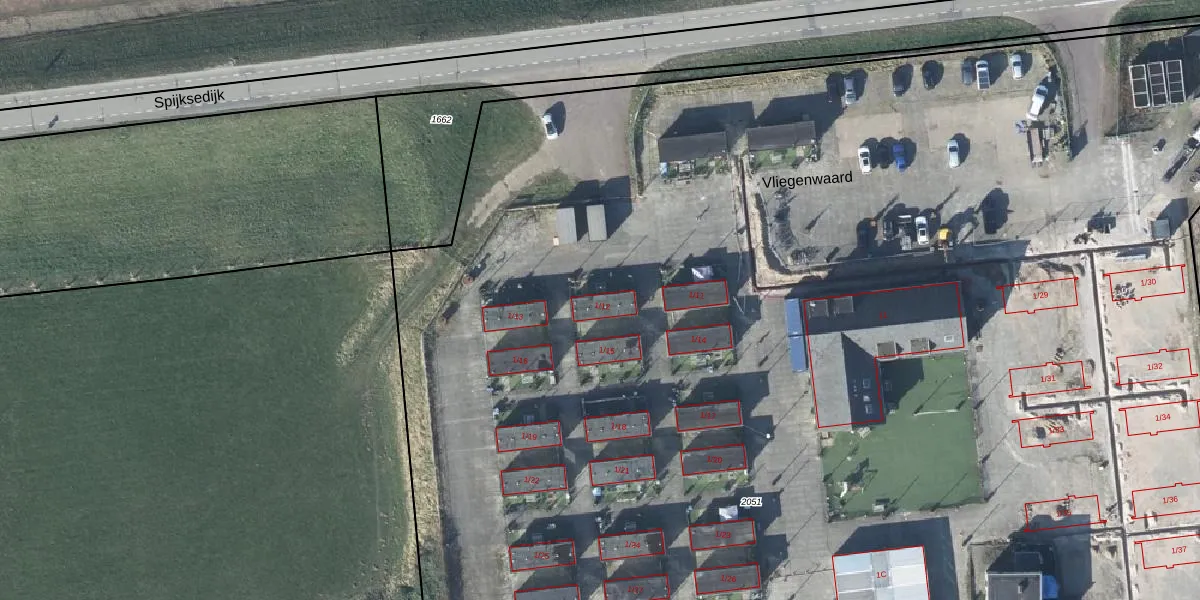 Vliegenwaard 1-15 is gelegen op kadastraal perceel LBH00A2051. Deze kadastrale aanduiding is uniek en wordt gebruikt door het Kadaster om eigendomsrechten en andere zakelijke rechten vast te leggen. Het perceel maakt onderdeel uit van de kadastrale gemeente Lobith en Spijk.