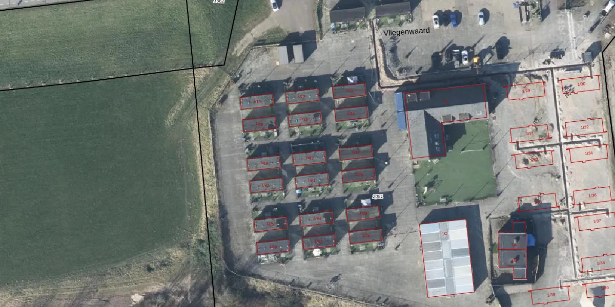 Het perceel waarop Vliegenwaard 1-21 staat heeft een oppervlakte van 1,8 ha. Dit is een zeer groot perceel. De perceeloppervlakte wordt geregistreerd door het Kadaster. Gedetailleerde informatie over de maten van dit perceel kunt u vinden in het rapport Kadastrale kaart met maatvoering van Vliegenwaard 1-21.