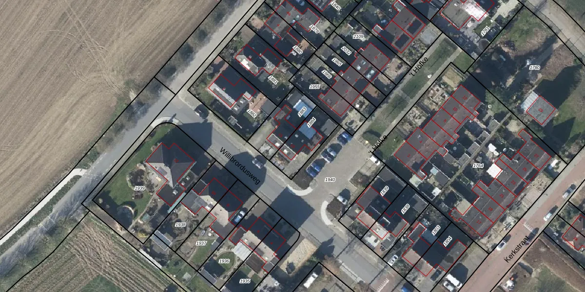 Willibrordusweg 13 is gelegen op kadastraal perceel LBH00A1884. Deze kadastrale aanduiding is uniek en wordt gebruikt door het Kadaster om eigendomsrechten en andere zakelijke rechten vast te leggen. Het perceel maakt onderdeel uit van de kadastrale gemeente Lobith en Spijk.