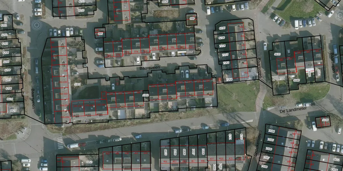 Het perceel waarop Baarsveen 252 staat heeft een oppervlakte van 3085 m². Dit is een zeer groot perceel. De perceeloppervlakte wordt geregistreerd door het Kadaster. Gedetailleerde informatie over de maten van dit perceel kunt u vinden in het rapport Kadastrale kaart met maatvoering van Baarsveen 252.