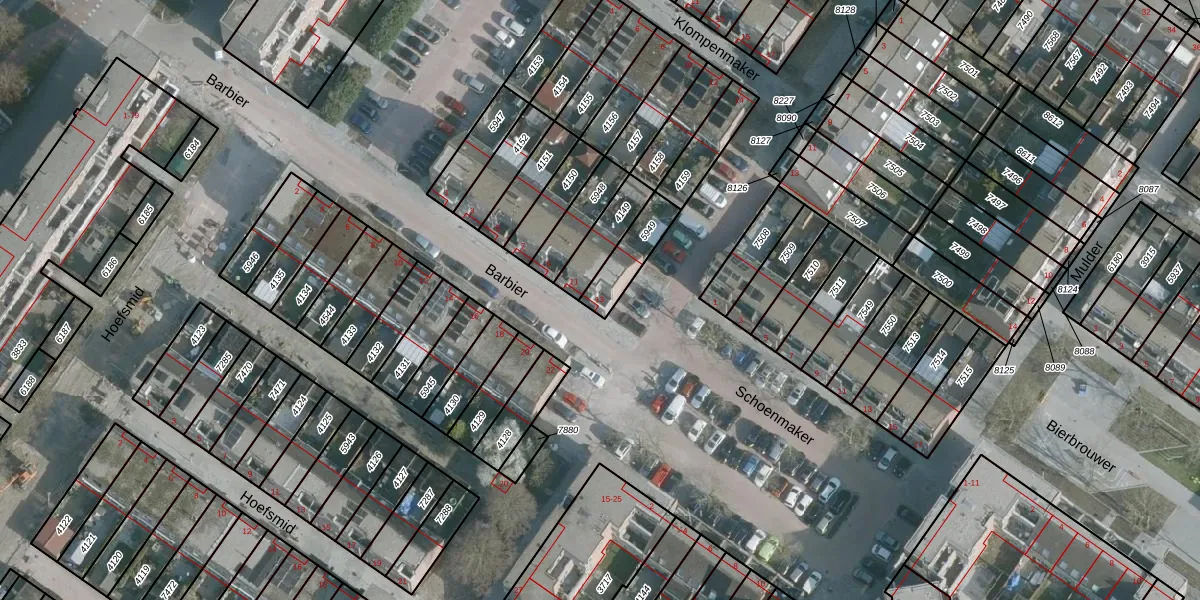 Het perceel waarop Barbier 13 staat heeft een oppervlakte van 119 m². Dit is een middelgroot perceel. De perceeloppervlakte wordt geregistreerd door het Kadaster. Gedetailleerde informatie over de maten van dit perceel kunt u vinden in het rapport Kadastrale kaart met maatvoering van Barbier 13.