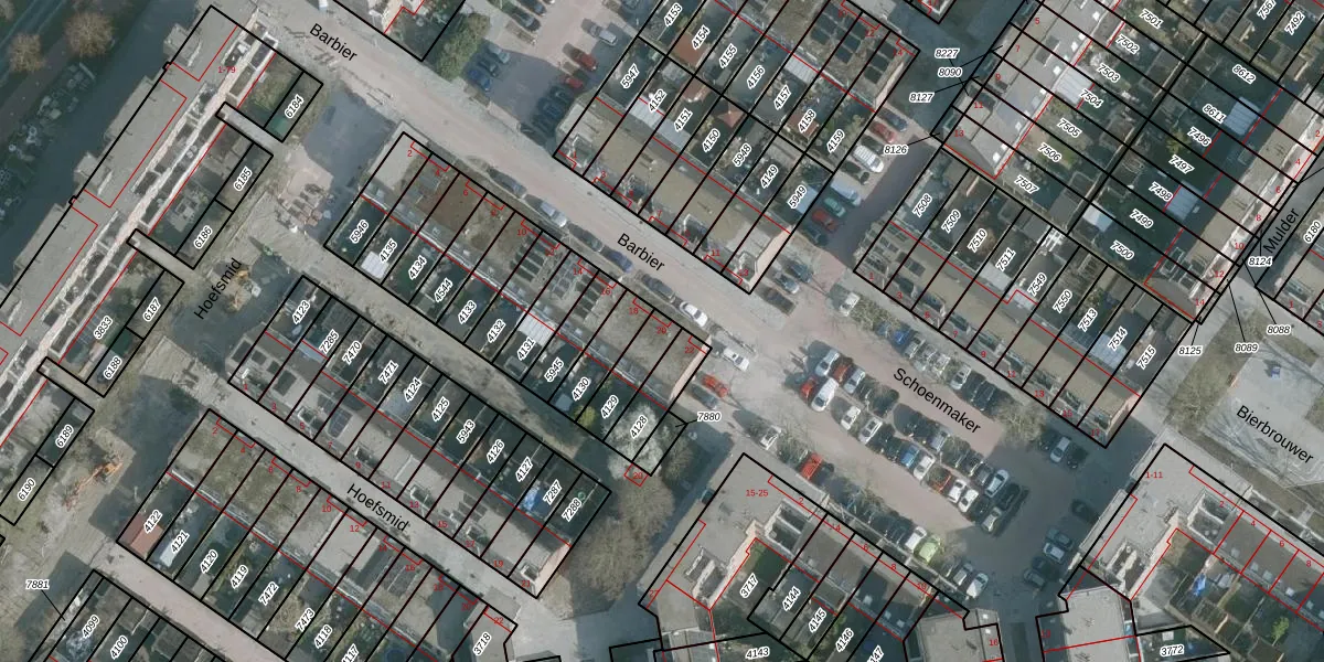 Het perceel waarop Barbier 20 staat heeft een oppervlakte van 107 m². Dit is een middelgroot perceel. De perceeloppervlakte wordt geregistreerd door het Kadaster. Gedetailleerde informatie over de maten van dit perceel kunt u vinden in het rapport Kadastrale kaart met maatvoering van Barbier 20.