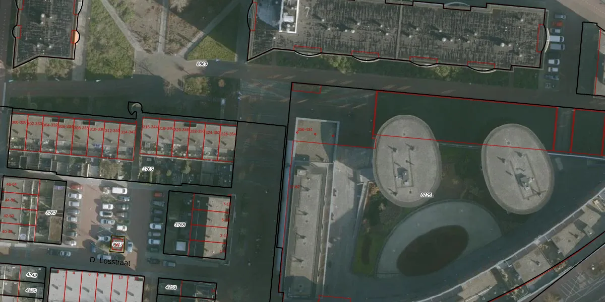 D. Losstraat 49 is gelegen op kadastraal perceel SKN00D8225. Deze kadastrale aanduiding is uniek en wordt gebruikt door het Kadaster om eigendomsrechten en andere zakelijke rechten vast te leggen. Het perceel maakt onderdeel uit van de kadastrale gemeente Spijkenisse.