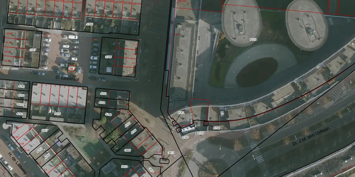 D. Losstraat 67 is gelegen op kadastraal perceel SKN00D8225. Deze kadastrale aanduiding is uniek en wordt gebruikt door het Kadaster om eigendomsrechten en andere zakelijke rechten vast te leggen. Het perceel maakt onderdeel uit van de kadastrale gemeente Spijkenisse.
