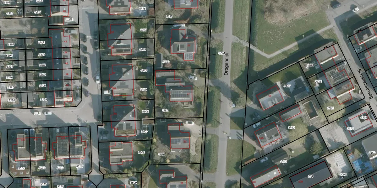 Het perceel waarop Drogendijk 27 staat heeft een oppervlakte van 700 m². Dit is een groot perceel. De perceeloppervlakte wordt geregistreerd door het Kadaster. Gedetailleerde informatie over de maten van dit perceel kunt u vinden in het rapport Kadastrale kaart met maatvoering van Drogendijk 27.