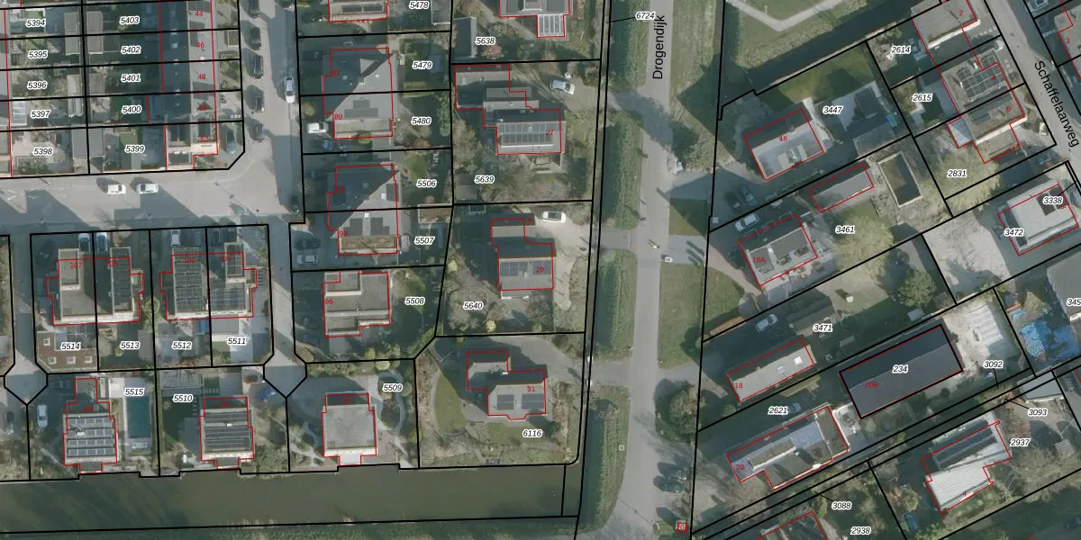 Het perceel waarop Drogendijk 29 staat heeft een oppervlakte van 653 m². Dit is een groot perceel. De perceeloppervlakte wordt geregistreerd door het Kadaster. Gedetailleerde informatie over de maten van dit perceel kunt u vinden in het rapport Kadastrale kaart met maatvoering van Drogendijk 29.