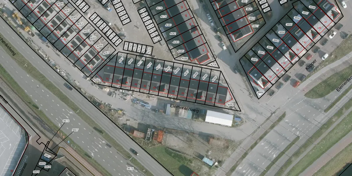 Elementenweg 56 is gelegen op kadastraal perceel SKN00C4084. Deze kadastrale aanduiding is uniek en wordt gebruikt door het Kadaster om eigendomsrechten en andere zakelijke rechten vast te leggen. Het perceel maakt onderdeel uit van de kadastrale gemeente Spijkenisse.