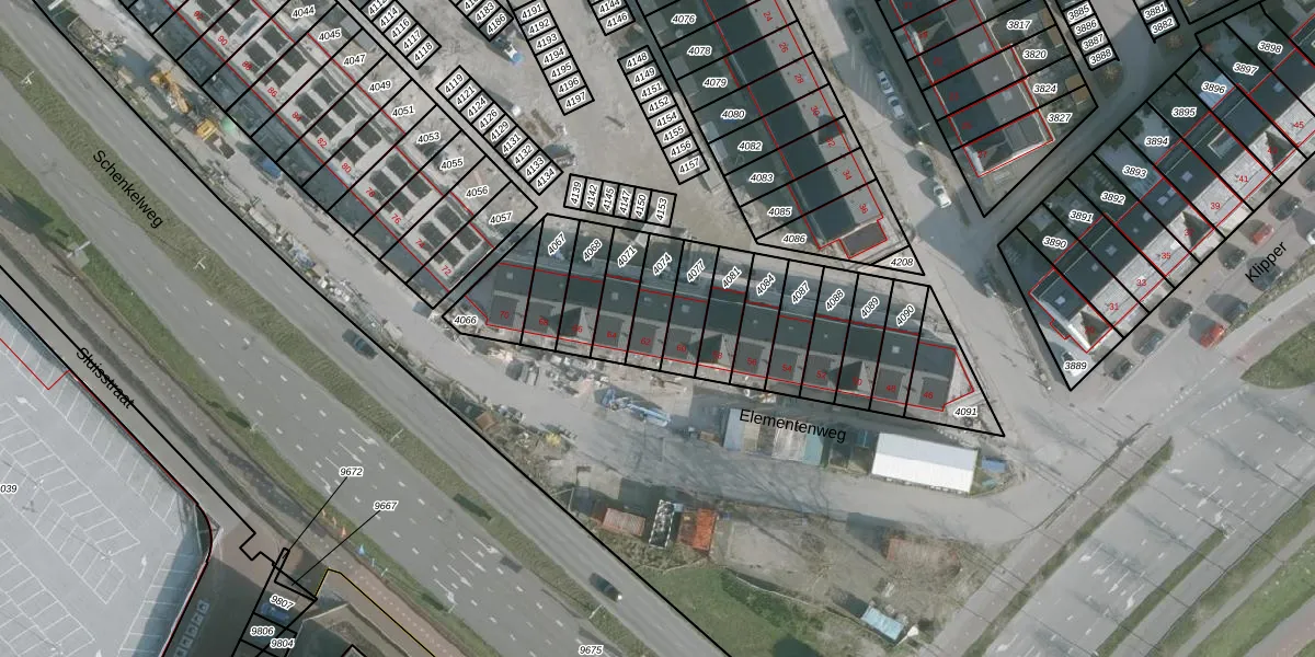 Elementenweg 62 is gelegen op kadastraal perceel SKN00C4074. Deze kadastrale aanduiding is uniek en wordt gebruikt door het Kadaster om eigendomsrechten en andere zakelijke rechten vast te leggen. Het perceel maakt onderdeel uit van de kadastrale gemeente Spijkenisse.
