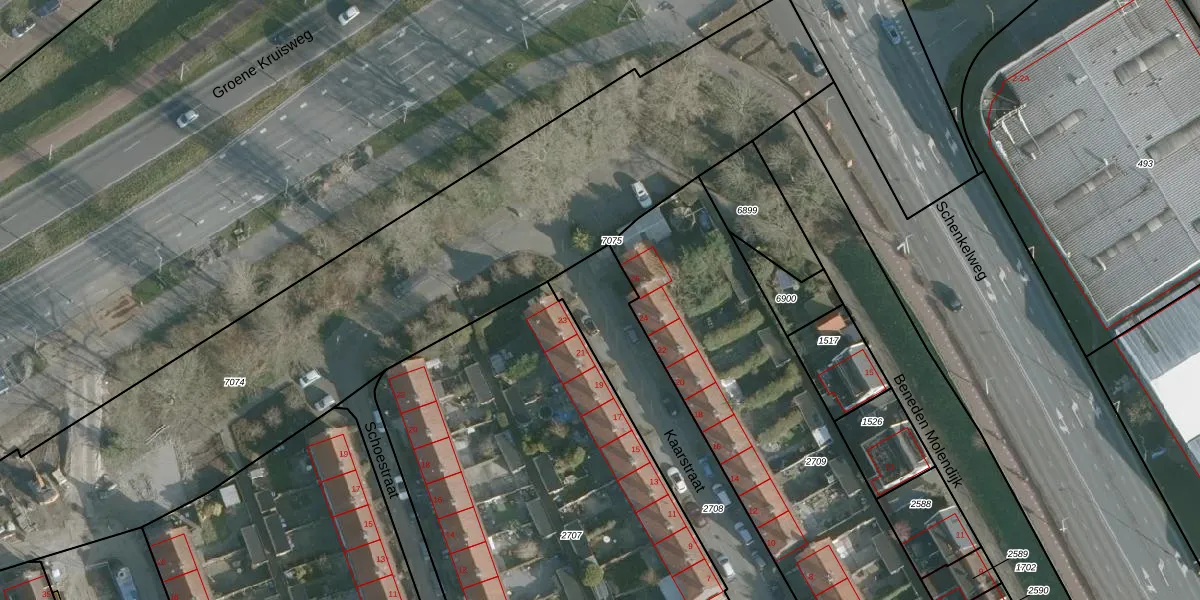 Kaarstraat 32 is gelegen op kadastraal perceel SKN00E2708. Deze kadastrale aanduiding is uniek en wordt gebruikt door het Kadaster om eigendomsrechten en andere zakelijke rechten vast te leggen. Het perceel maakt onderdeel uit van de kadastrale gemeente Spijkenisse.