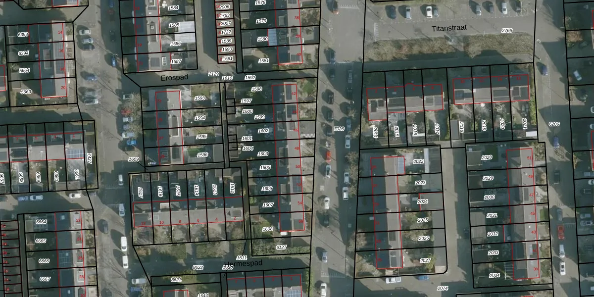 Het adres is gelegen op perceel 1603 in de sectie D en de kadastrale gemeente Spijkenisse. De kadastrale aanduiding is aldus SKN00-D-1603. De gemiddelde perceelgrootte in Spijkenisse is 1190,8 m². Dit perceel is kleiner: de perceeloppervlakte bedraagt 173 m². Het kleinste perceel in de kadastrale gemeente is 0 m² groot. De grootste perceeloppervlakte is 1,17 km². Op het perceel bevinden zich geen andere adressen. De huidige grenzen van het perceel zijn digitaal in de Basisregistratie Kadaster (BRK) geregistreerd op 30-11-2000.