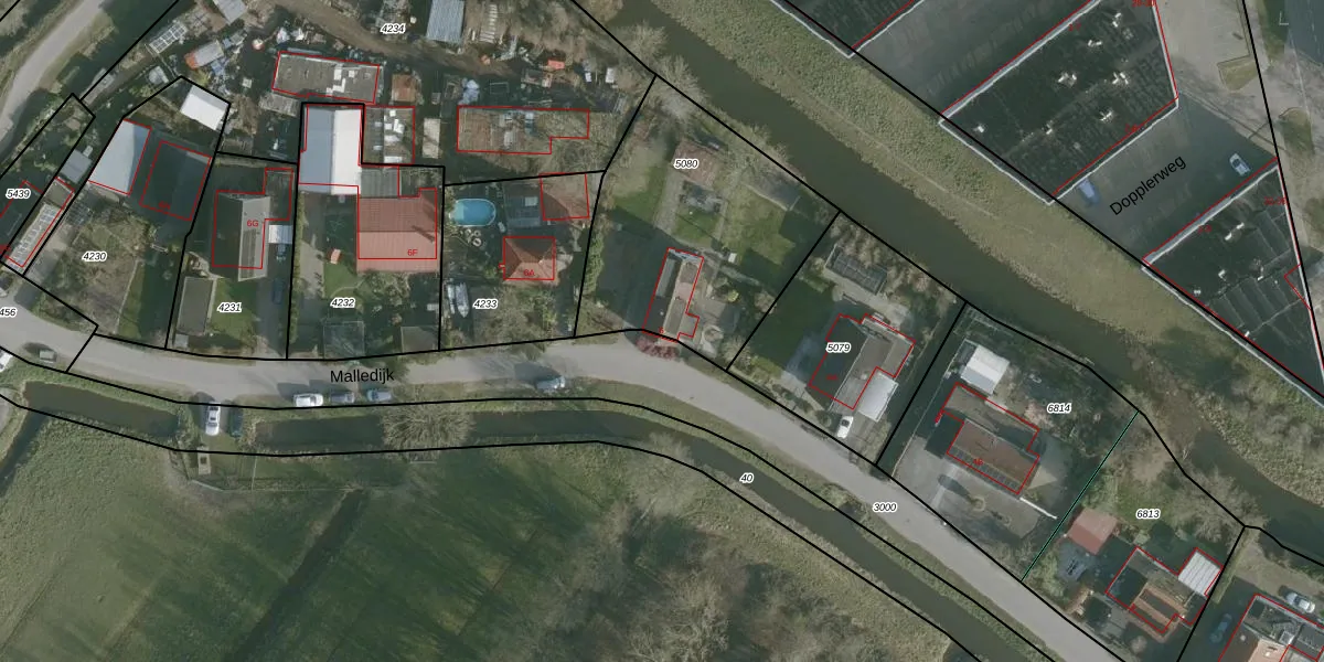 Het perceel waarop Malledijk 6 staat heeft een oppervlakte van 1088 m². Dit is een zeer groot perceel. De perceeloppervlakte wordt geregistreerd door het Kadaster. Gedetailleerde informatie over de maten van dit perceel kunt u vinden in het rapport Kadastrale kaart met maatvoering van Malledijk 6.