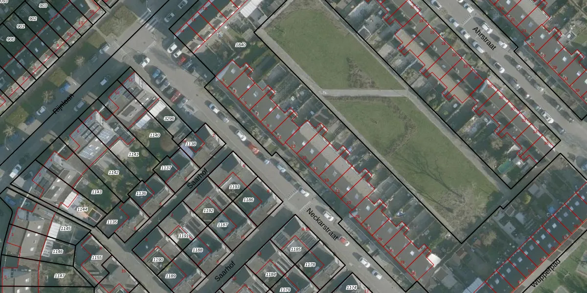 Het perceel waarop Neckarstraat 13 staat heeft een oppervlakte van 7895 m². Dit is een zeer groot perceel. De perceeloppervlakte wordt geregistreerd door het Kadaster. Gedetailleerde informatie over de maten van dit perceel kunt u vinden in het rapport Kadastrale kaart met maatvoering van Neckarstraat 13.