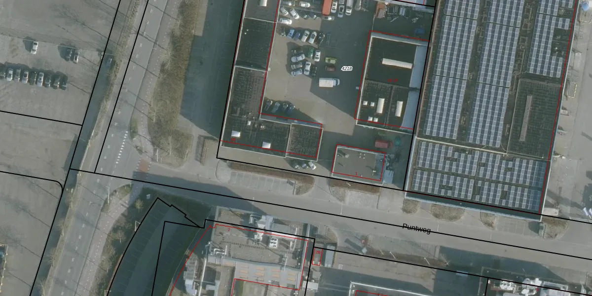 Het perceel waarop Puntweg 1-A staat heeft een oppervlakte van 4033 m². Dit is een zeer groot perceel. De perceeloppervlakte wordt geregistreerd door het Kadaster. Gedetailleerde informatie over de maten van dit perceel kunt u vinden in het rapport Kadastrale kaart met maatvoering van Puntweg 1-A.