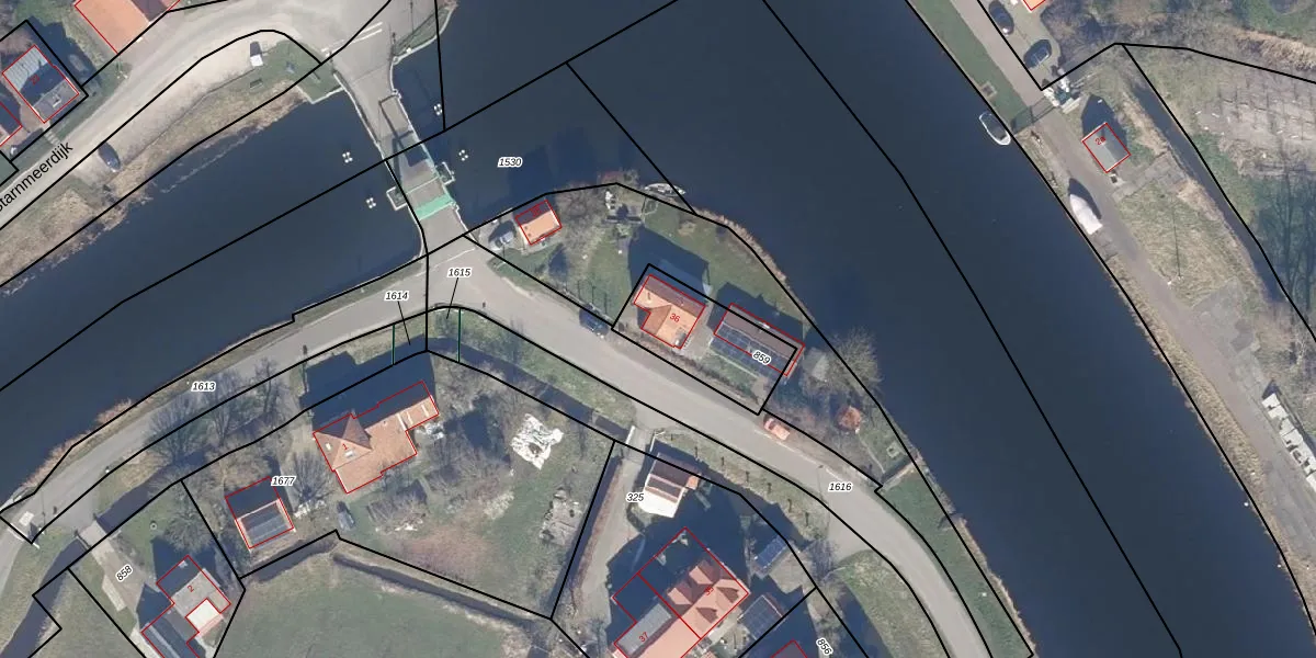 Kanaaldijk 36 is gelegen op kadastraal perceel JIS00H859. Deze kadastrale aanduiding is uniek en wordt gebruikt door het Kadaster om eigendomsrechten en andere zakelijke rechten vast te leggen. Het perceel maakt onderdeel uit van de kadastrale gemeente Jisp.