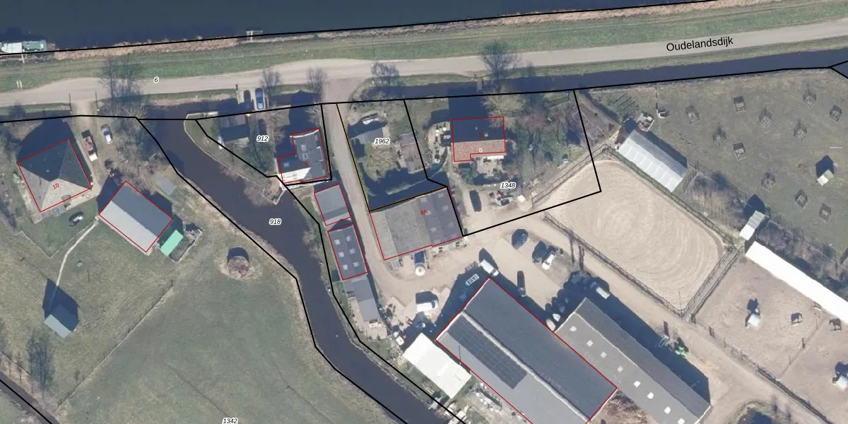 Het perceel waarop Oudelandsdijk 8-A staat heeft een oppervlakte van 4,7 ha. Dit is een zeer groot perceel. De perceeloppervlakte wordt geregistreerd door het Kadaster. Gedetailleerde informatie over de maten van dit perceel kunt u vinden in het rapport Kadastrale kaart met maatvoering van Oudelandsdijk 8-A.