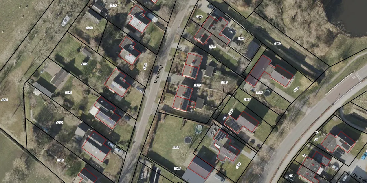 Het perceel waarop Veenweg 4 staat heeft een oppervlakte van 1205 m². Dit is een zeer groot perceel. De perceeloppervlakte wordt geregistreerd door het Kadaster. Gedetailleerde informatie over de maten van dit perceel kunt u vinden in het rapport Kadastrale kaart met maatvoering van Veenweg 4.