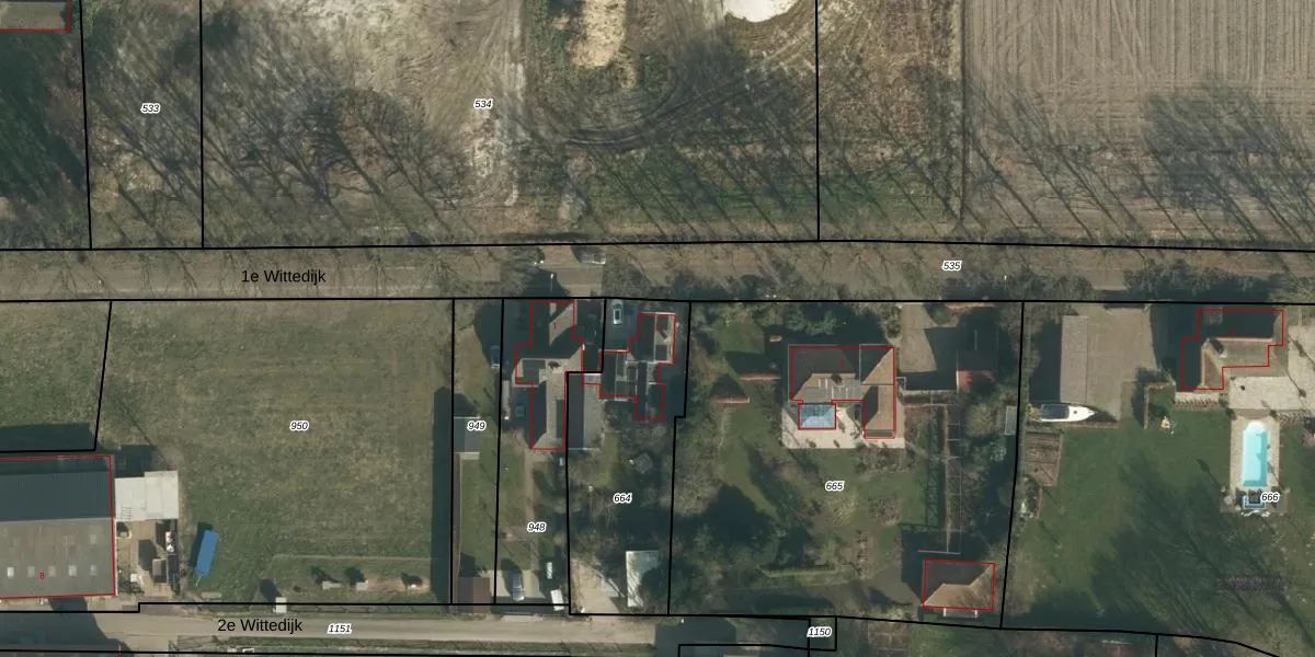 1e Wittedijk 2 is gelegen op kadastraal perceel CPL02O664. Deze kadastrale aanduiding is uniek en wordt gebruikt door het Kadaster om eigendomsrechten en andere zakelijke rechten vast te leggen. Het perceel maakt onderdeel uit van de kadastrale gemeente Capelle.