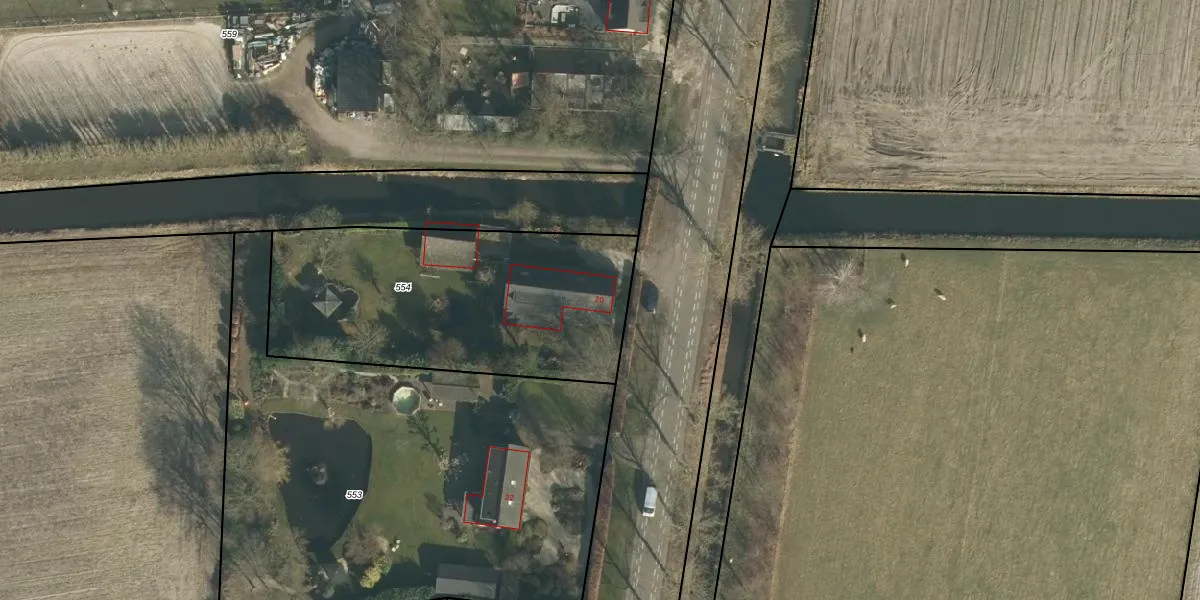 Het adres is gelegen op perceel 554 in de sectie O en de kadastrale gemeente Capelle. De kadastrale aanduiding is aldus CPL02-O-554. Het perceel is 1545 m² groot. Dat is kleiner dan de gemiddelde perceeloppervlakte in Capelle, dat op 7613,87 m² ligt. De grootste perceeloppervlakte in de kadastrale gemeente is 34,4 ha. De kleinste oppervlakte bedraagt 1 m². Er zijn geen andere adressen aanwezig op het perceel. De laatste wijziging in het de Basisregistratie Kadaster (BRK) was op 21-06-2007.