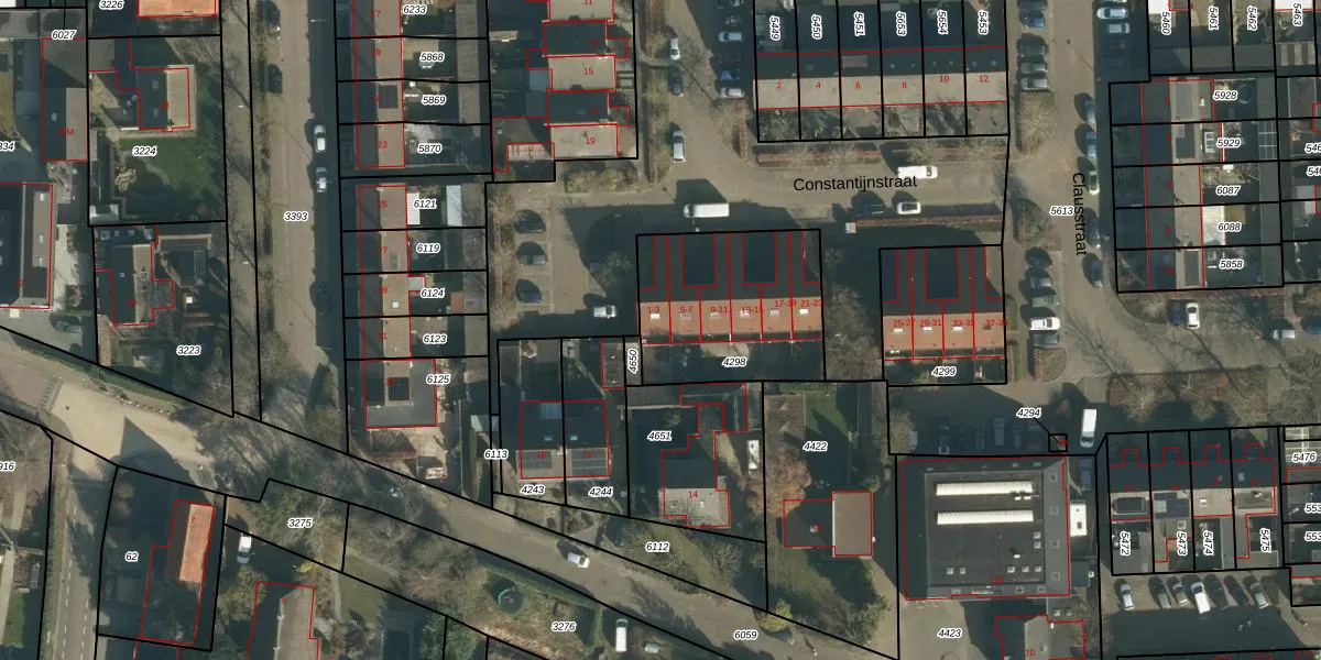 Het perceel waarop Constantijnstraat 3 staat heeft een oppervlakte van 636 m². Dit is een groot perceel. De perceeloppervlakte wordt geregistreerd door het Kadaster. Gedetailleerde informatie over de maten van dit perceel kunt u vinden in het rapport Kadastrale kaart met maatvoering van Constantijnstraat 3.