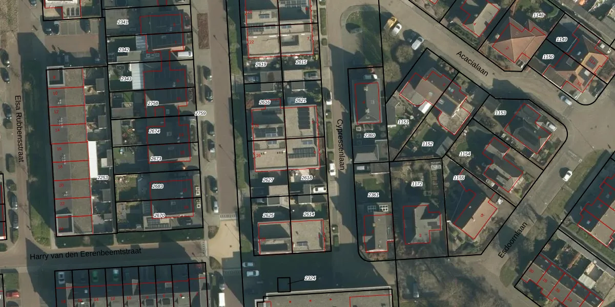 Cypressenlaan 3 is gelegen op kadastraal perceel SPR01C2618. Deze kadastrale aanduiding is uniek en wordt gebruikt door het Kadaster om eigendomsrechten en andere zakelijke rechten vast te leggen. Het perceel maakt onderdeel uit van de kadastrale gemeente Sprang.