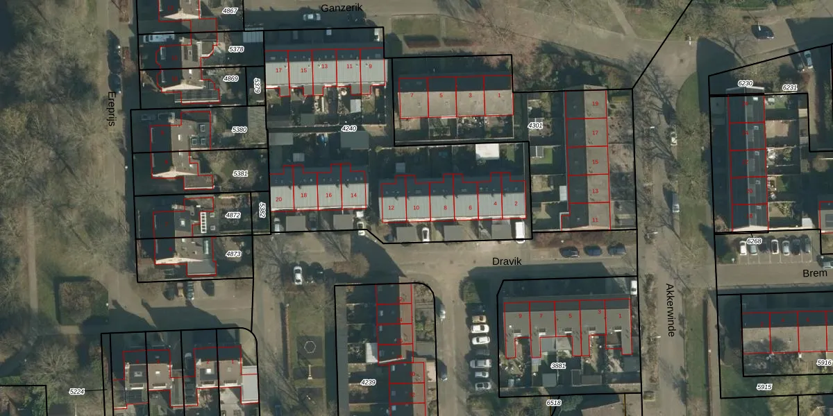 Het perceel waarop Dravik 10 staat heeft een oppervlakte van 2239 m². Dit is een zeer groot perceel. De perceeloppervlakte wordt geregistreerd door het Kadaster. Gedetailleerde informatie over de maten van dit perceel kunt u vinden in het rapport Kadastrale kaart met maatvoering van Dravik 10.