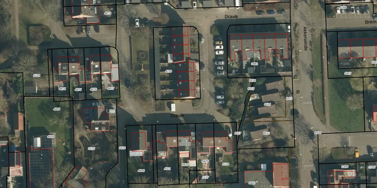 Het perceel waarop Dravik 36 staat heeft een oppervlakte van 917 m². Dit is een groot perceel. De perceeloppervlakte wordt geregistreerd door het Kadaster. Gedetailleerde informatie over de maten van dit perceel kunt u vinden in het rapport Kadastrale kaart met maatvoering van Dravik 36.