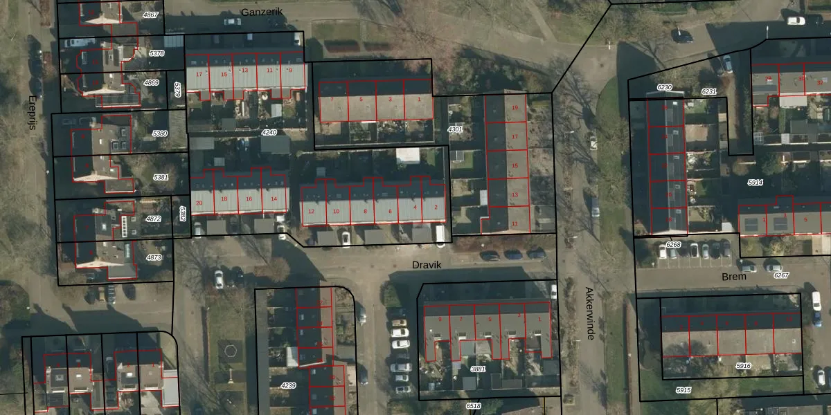 Het perceel waarop Dravik 4 staat heeft een oppervlakte van 2239 m². Dit is een zeer groot perceel. De perceeloppervlakte wordt geregistreerd door het Kadaster. Gedetailleerde informatie over de maten van dit perceel kunt u vinden in het rapport Kadastrale kaart met maatvoering van Dravik 4.