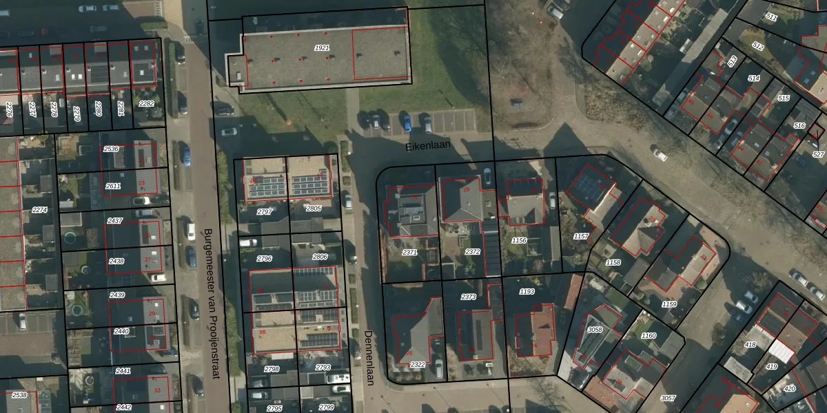 Gebruik de zoekbalk of klik op een perceel voor informatie over de adressen binnen dit perceel.