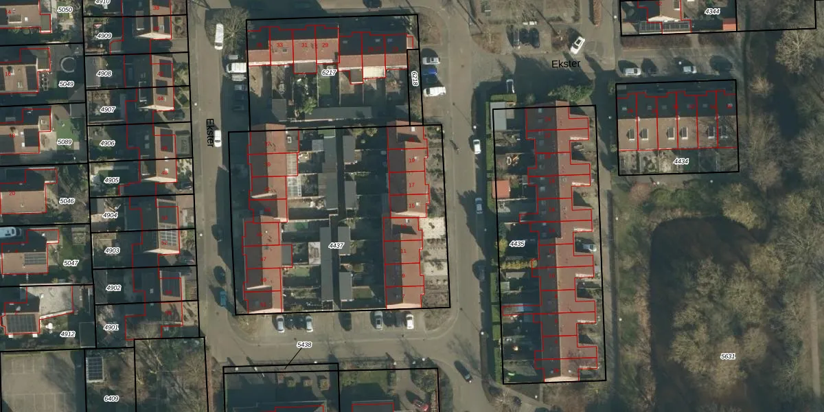 Ekster 15 is gelegen op kadastraal perceel SPR01B4437. Deze kadastrale aanduiding is uniek en wordt gebruikt door het Kadaster om eigendomsrechten en andere zakelijke rechten vast te leggen. Het perceel maakt onderdeel uit van de kadastrale gemeente Sprang.