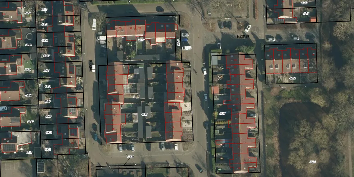 Ekster 17 is gelegen op kadastraal perceel SPR01B4437. Deze kadastrale aanduiding is uniek en wordt gebruikt door het Kadaster om eigendomsrechten en andere zakelijke rechten vast te leggen. Het perceel maakt onderdeel uit van de kadastrale gemeente Sprang.