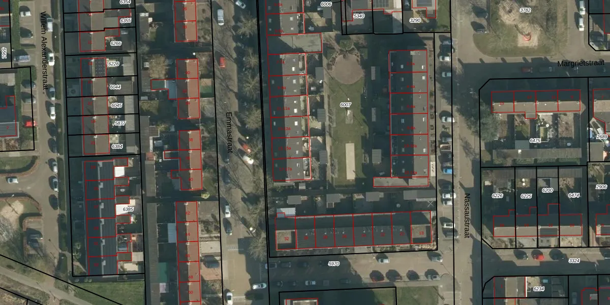 Emmastraat 15 is gelegen op kadastraal perceel SPR01B6007. Deze kadastrale aanduiding is uniek en wordt gebruikt door het Kadaster om eigendomsrechten en andere zakelijke rechten vast te leggen. Het perceel maakt onderdeel uit van de kadastrale gemeente Sprang.