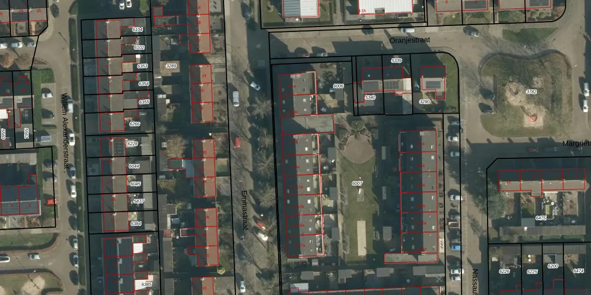 Het perceel waarop Emmastraat 7 staat heeft een oppervlakte van 4535 m². Dit is een zeer groot perceel. De perceeloppervlakte wordt geregistreerd door het Kadaster. Gedetailleerde informatie over de maten van dit perceel kunt u vinden in het rapport Kadastrale kaart met maatvoering van Emmastraat 7.