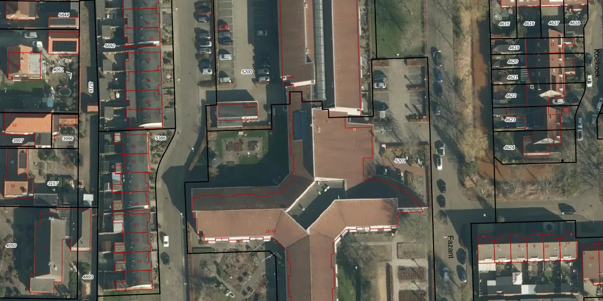 Fazant 15-30 is gelegen op kadastraal perceel SPR01B5201. Deze kadastrale aanduiding is uniek en wordt gebruikt door het Kadaster om eigendomsrechten en andere zakelijke rechten vast te leggen. Het perceel maakt onderdeel uit van de kadastrale gemeente Sprang.