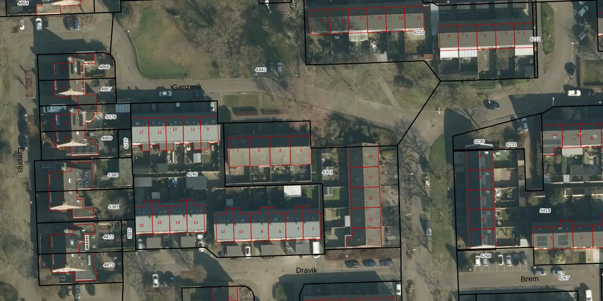 Het perceel waarop Ganzerik 1 staat heeft een oppervlakte van 1504 m². Dit is een zeer groot perceel. De perceeloppervlakte wordt geregistreerd door het Kadaster. Gedetailleerde informatie over de maten van dit perceel kunt u vinden in het rapport Kadastrale kaart met maatvoering van Ganzerik 1.