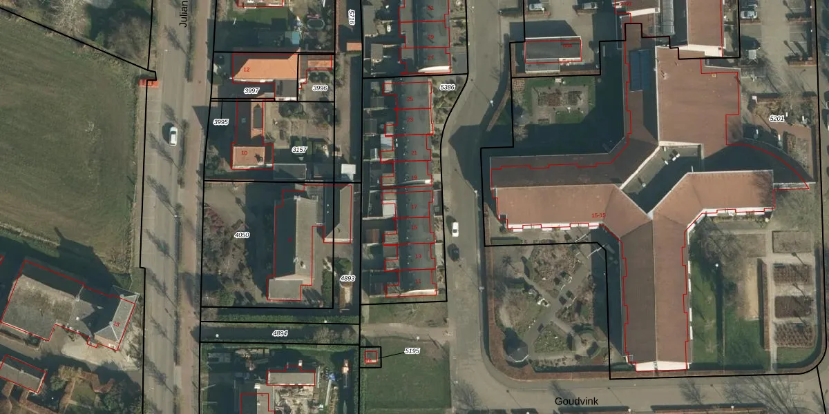 Goudvink 17 is gelegen op kadastraal perceel SPR01B5386. Deze kadastrale aanduiding is uniek en wordt gebruikt door het Kadaster om eigendomsrechten en andere zakelijke rechten vast te leggen. Het perceel maakt onderdeel uit van de kadastrale gemeente Sprang.