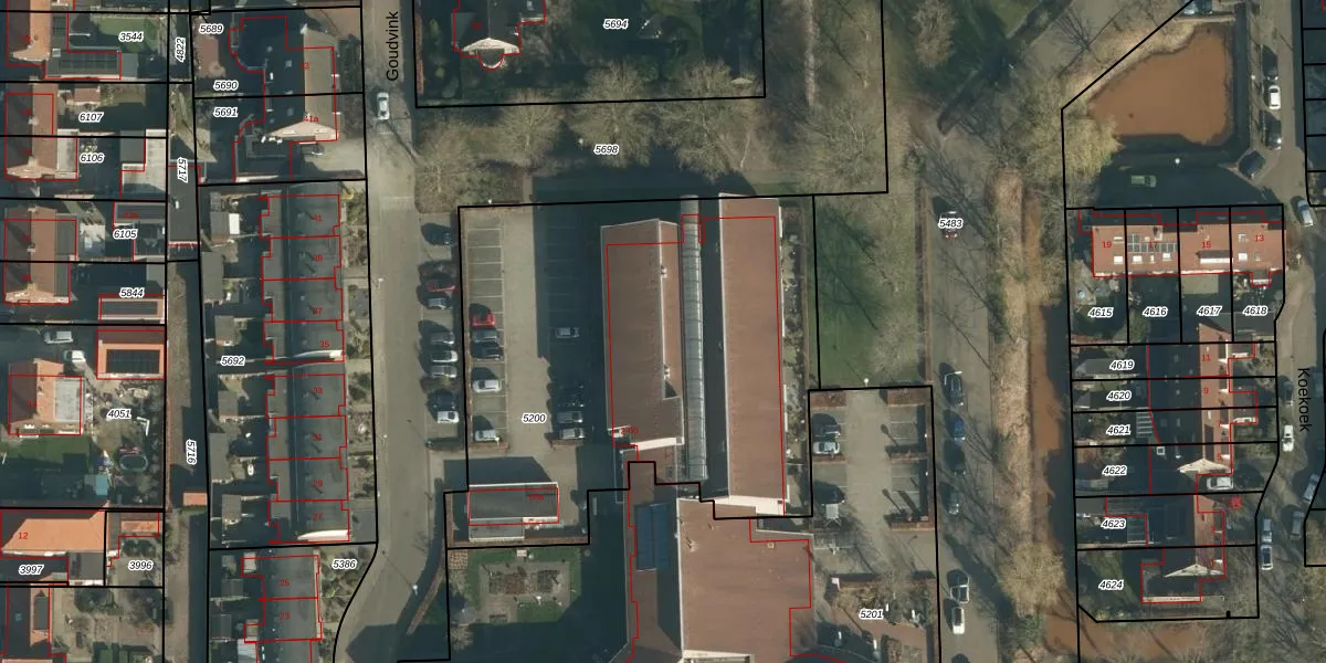 Het perceel waarop Goudvink 20 staat heeft een oppervlakte van 2530 m². Dit is een zeer groot perceel. De perceeloppervlakte wordt geregistreerd door het Kadaster. Gedetailleerde informatie over de maten van dit perceel kunt u vinden in het rapport Kadastrale kaart met maatvoering van Goudvink 20.