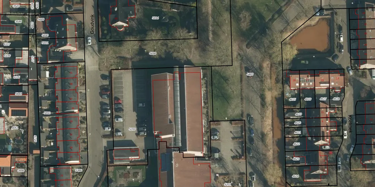 Het perceel waarop Goudvink 52 staat heeft een oppervlakte van 2530 m². Dit is een zeer groot perceel. De perceeloppervlakte wordt geregistreerd door het Kadaster. Gedetailleerde informatie over de maten van dit perceel kunt u vinden in het rapport Kadastrale kaart met maatvoering van Goudvink 52.