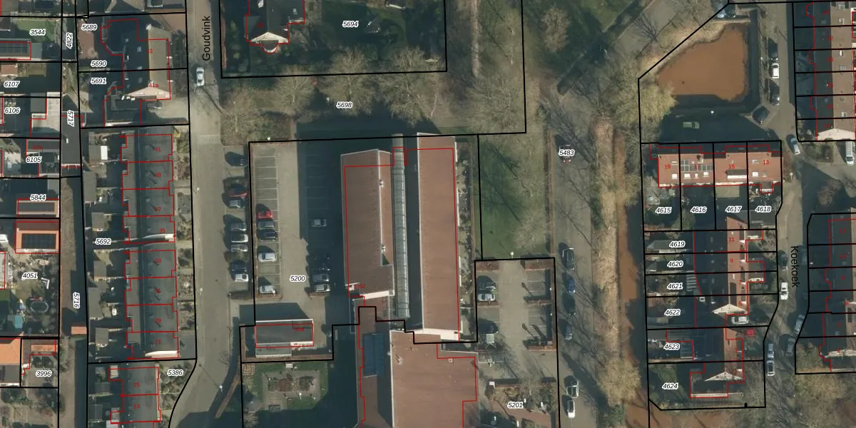 Het perceel waarop Goudvink 54 staat heeft een oppervlakte van 2530 m². Dit is een zeer groot perceel. De perceeloppervlakte wordt geregistreerd door het Kadaster. Gedetailleerde informatie over de maten van dit perceel kunt u vinden in het rapport Kadastrale kaart met maatvoering van Goudvink 54.
