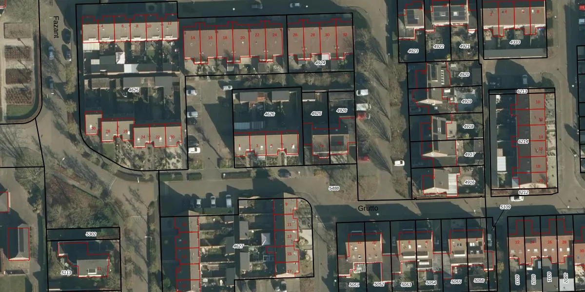 Het perceel waarop Grutto 7 staat heeft een oppervlakte van 635 m². Dit is een groot perceel. De perceeloppervlakte wordt geregistreerd door het Kadaster. Gedetailleerde informatie over de maten van dit perceel kunt u vinden in het rapport Kadastrale kaart met maatvoering van Grutto 7.