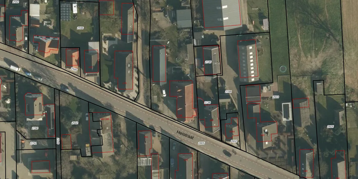 Het perceel waarop Heistraat 168-a staat heeft een oppervlakte van 4570 m². Dit is een zeer groot perceel. De perceeloppervlakte wordt geregistreerd door het Kadaster. Gedetailleerde informatie over de maten van dit perceel kunt u vinden in het rapport Kadastrale kaart met maatvoering van Heistraat 168-a.