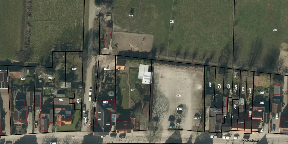 Het perceel waarop Hoofdstraat 28-M staat heeft een oppervlakte van 1235 m². Dit is een zeer groot perceel. De perceeloppervlakte wordt geregistreerd door het Kadaster. Gedetailleerde informatie over de maten van dit perceel kunt u vinden in het rapport Kadastrale kaart met maatvoering van Hoofdstraat 28-M.