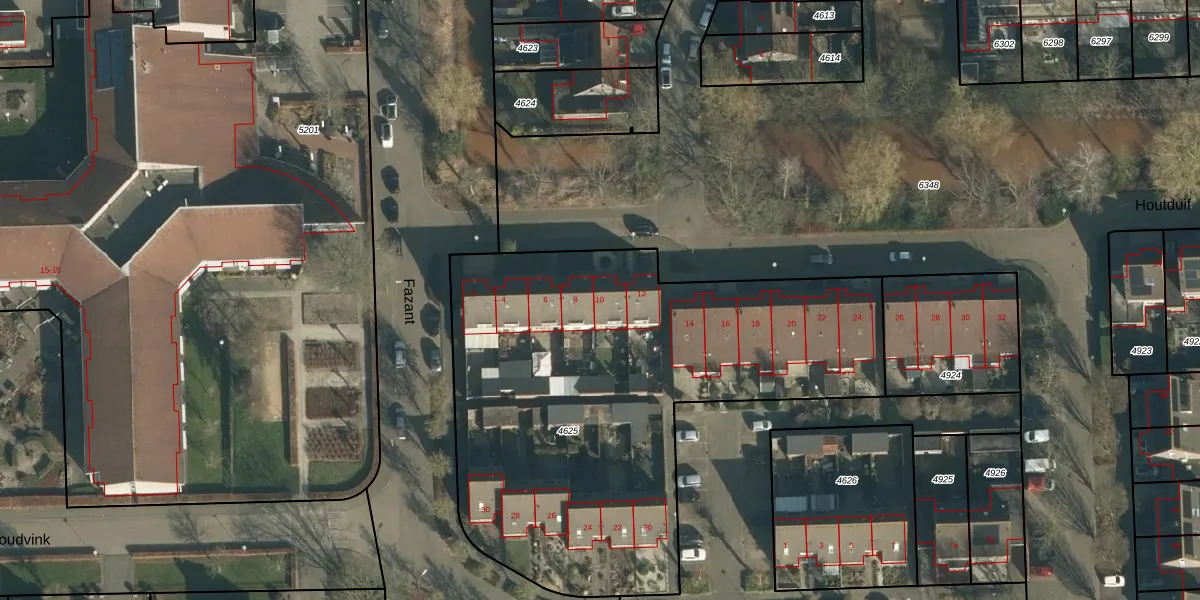 Houtduif 10 is gelegen op kadastraal perceel SPR01B4625. Deze kadastrale aanduiding is uniek en wordt gebruikt door het Kadaster om eigendomsrechten en andere zakelijke rechten vast te leggen. Het perceel maakt onderdeel uit van de kadastrale gemeente Sprang.