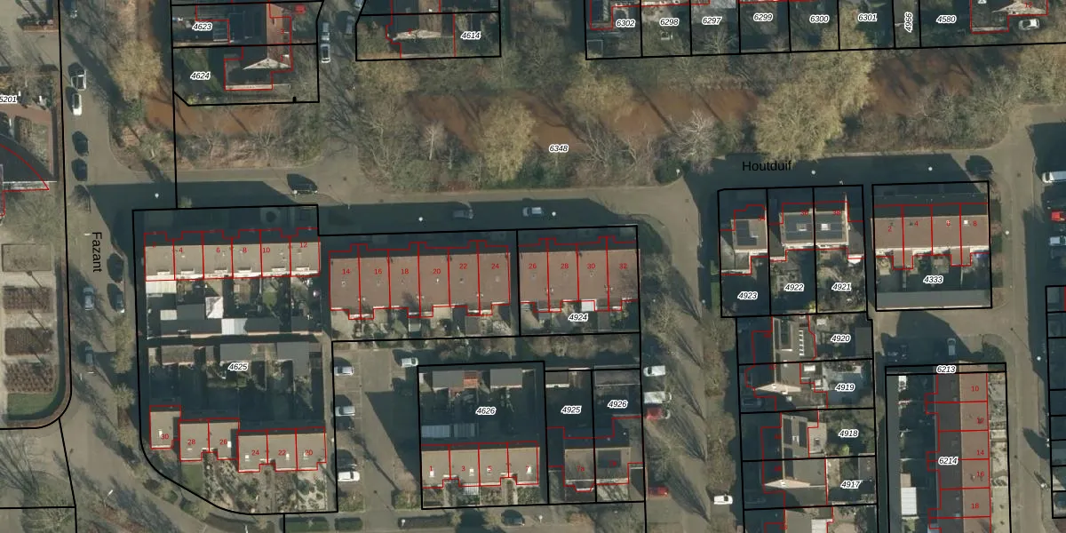 Het perceel waarop Houtduif 26 staat heeft een oppervlakte van 445 m². Dit is een groot perceel. De perceeloppervlakte wordt geregistreerd door het Kadaster. Gedetailleerde informatie over de maten van dit perceel kunt u vinden in het rapport Kadastrale kaart met maatvoering van Houtduif 26.