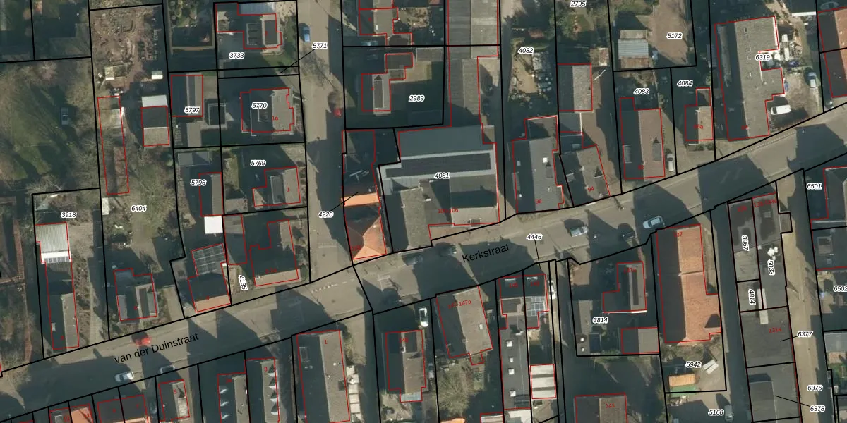Het perceel waarop Kerkstraat 104 staat heeft een oppervlakte van 992 m². Dit is een groot perceel. De perceeloppervlakte wordt geregistreerd door het Kadaster. Gedetailleerde informatie over de maten van dit perceel kunt u vinden in het rapport Kadastrale kaart met maatvoering van Kerkstraat 104.